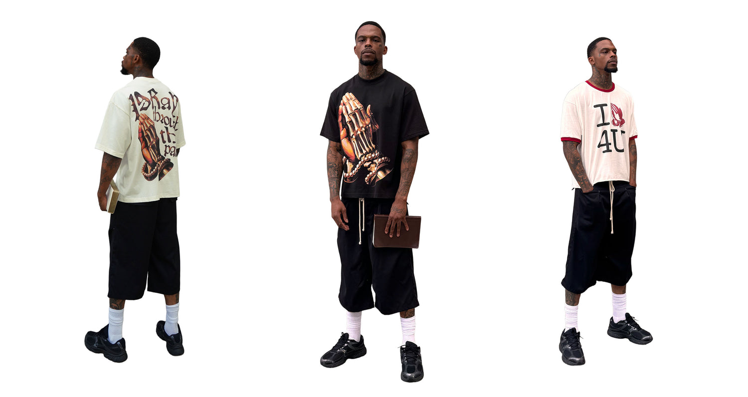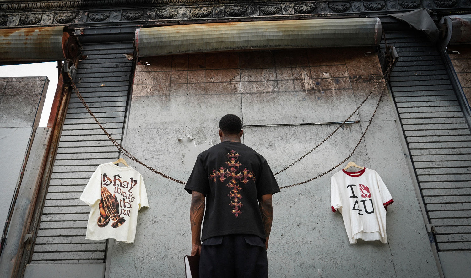 'Prayer in Pearls' Cropped Length Tee (Black)
