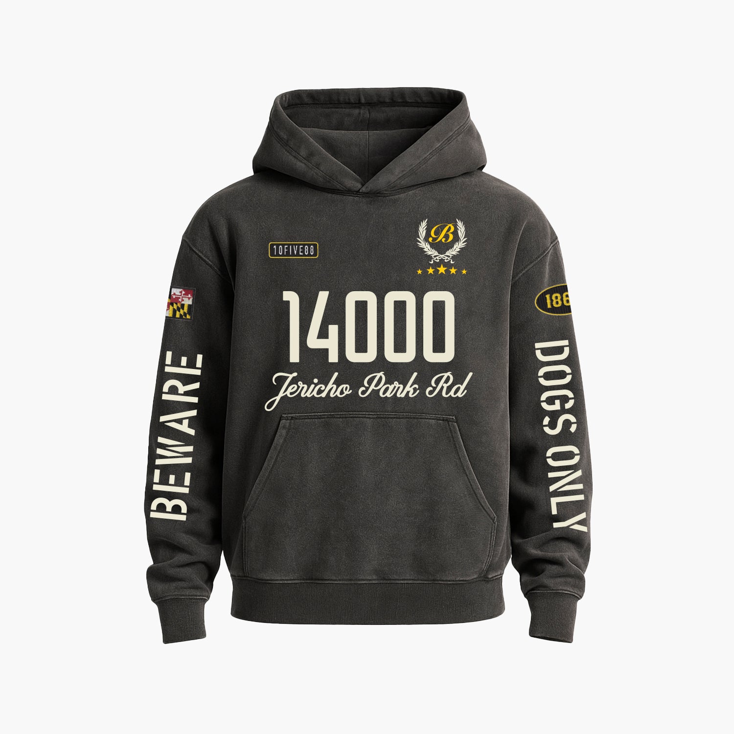 '14000 Jericho Park Rd' Hoodie (Regular + Distressed Options)