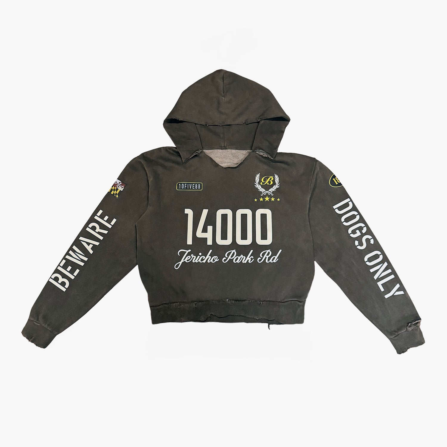 '14000 Jericho Park Rd' Women's Cropped Hoodie (Regular + Distressed Options)