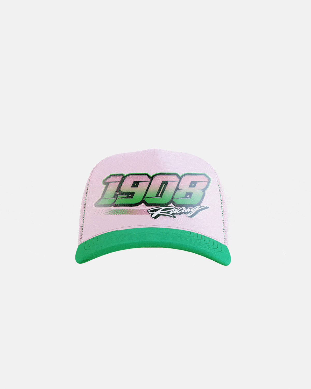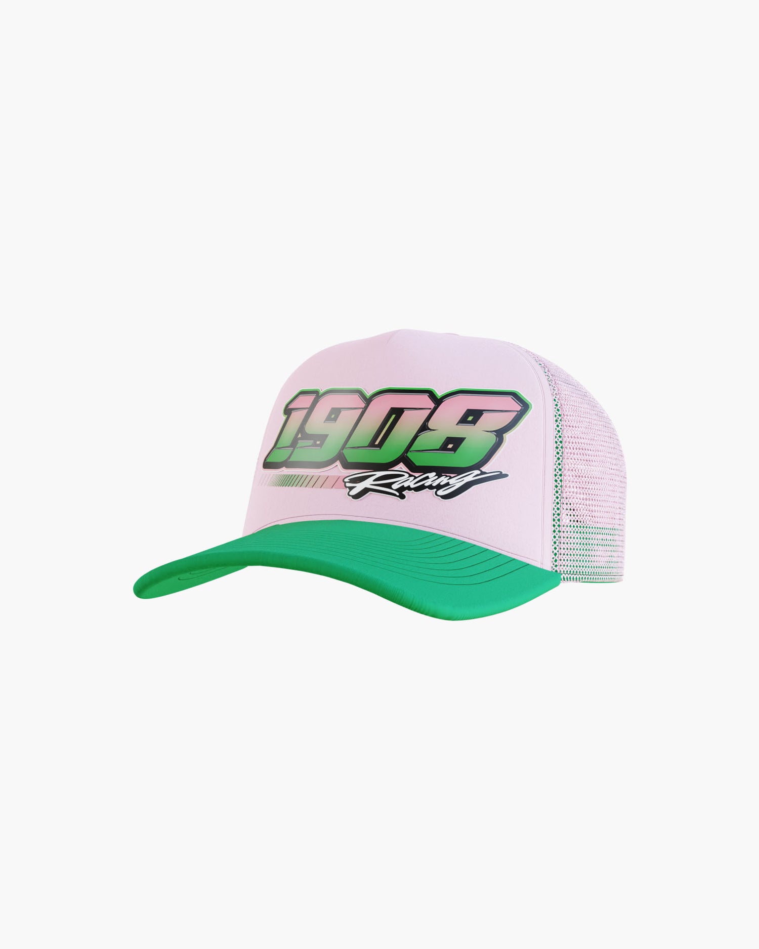 1908 Racing' Foam Trucker Hat. (Pink+Green)